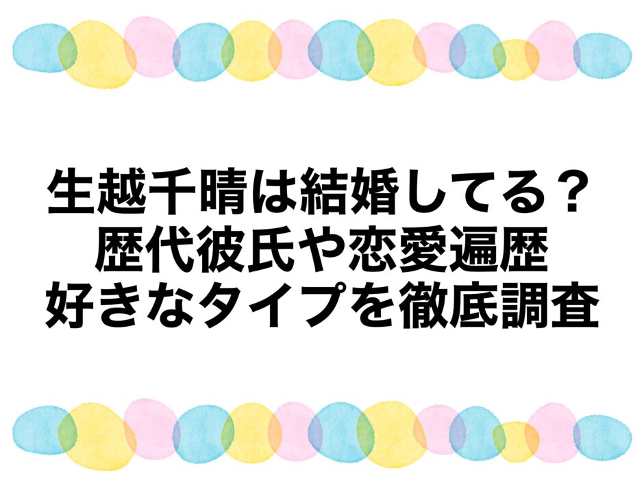 生越千晴は結婚してる?公式情報と噂の真相