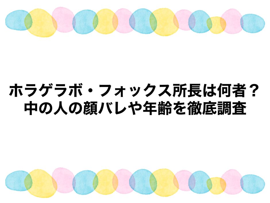 なんて疑問をお持ちのアナタのために、ホラゲラボ・フォックス所長って何者なのか、中の人の顔バレや年齢を徹底調査し、まとめました。