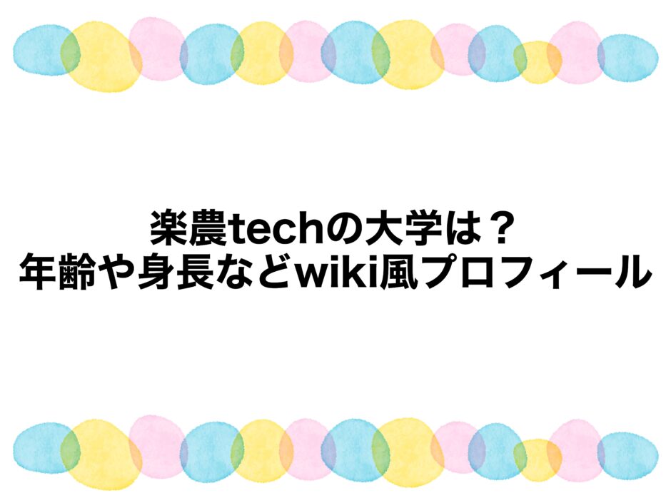 なんて疑問をお持ちのアナタのために、楽農techの2人の大学情報、年齢や身長などwiki風プロフィールを調査、まとめました。