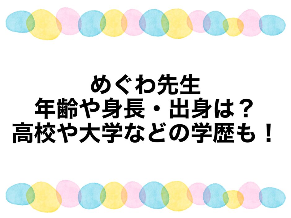 そんなアナタのために、めぐわ先生の年齢や身長・出身、高校や大学などの学歴も調査、まとめました。