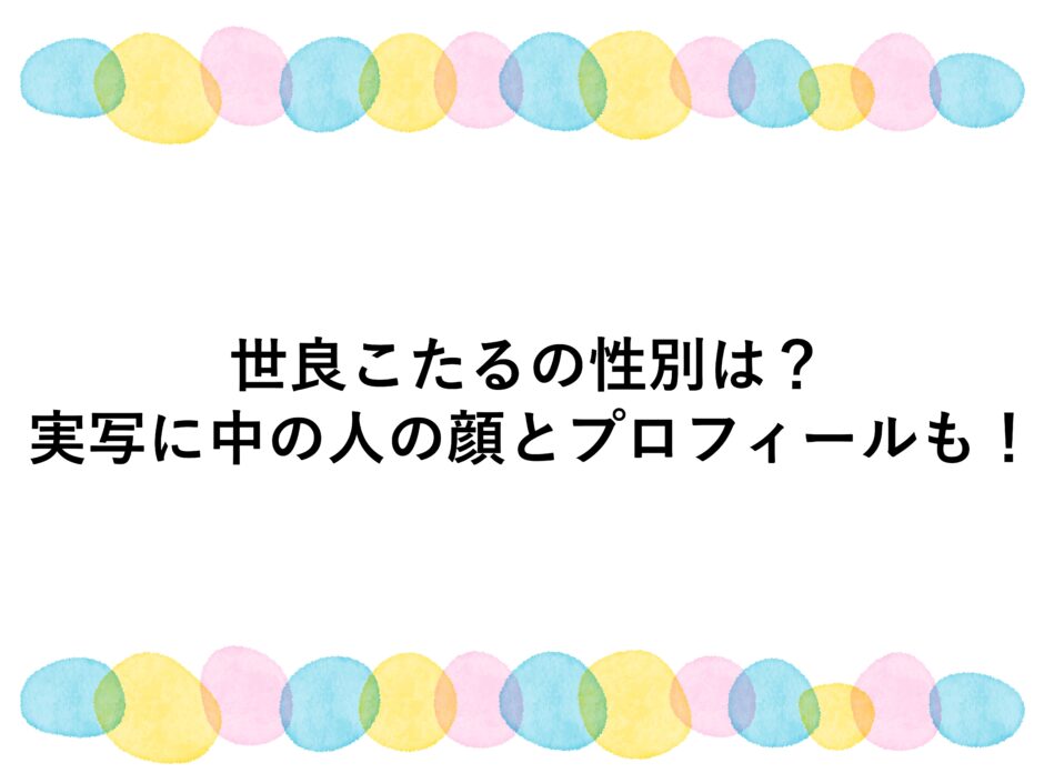 結論からいうと、世良こたるさんの性別は本人が公開していません。