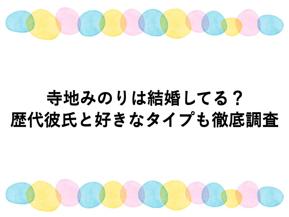 寺地みのりさんの結婚や歴代彼氏、好きなタイプを知りたい!