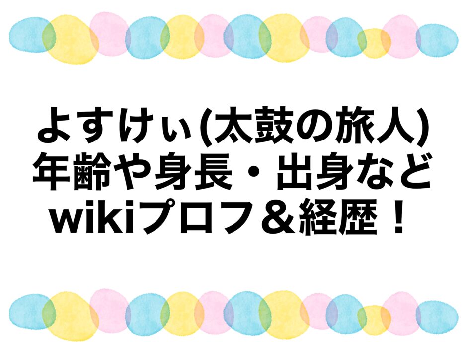 なんて疑問をお持ちのアナタのために、よすけぃ(太鼓の旅人)さんの年齢や身長・出身などwikiプロフ&経歴も調査、まとめました。
